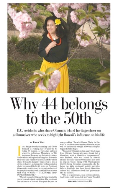 "DC residents who share Obama's island heritage cheer on a filmmaker who weeks to highlight Hawaii's influence on his life."
